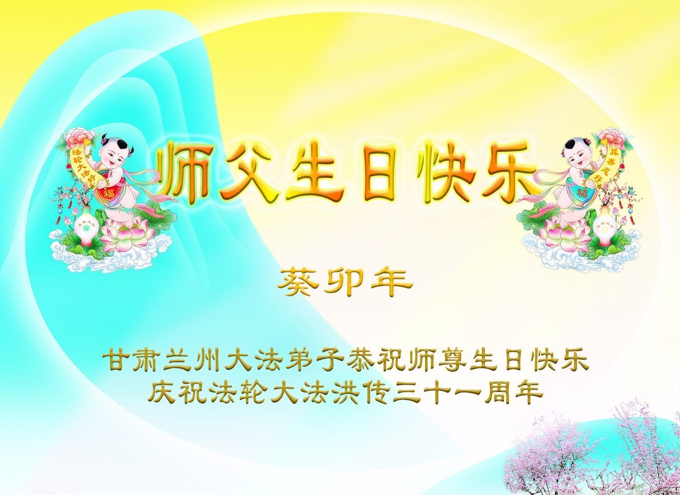 恭贺法轮大法洪传三十一周年! 甘肃被非法关押大法弟子恭祝师尊生日快乐!普天同庆法轮大法日!