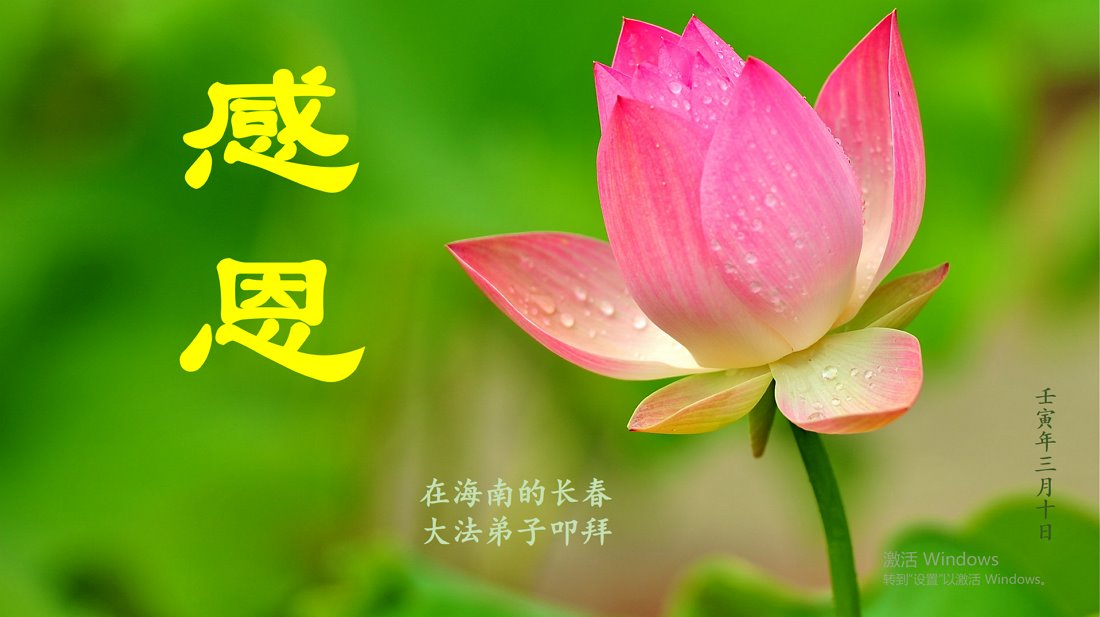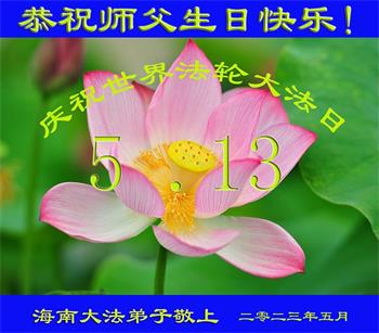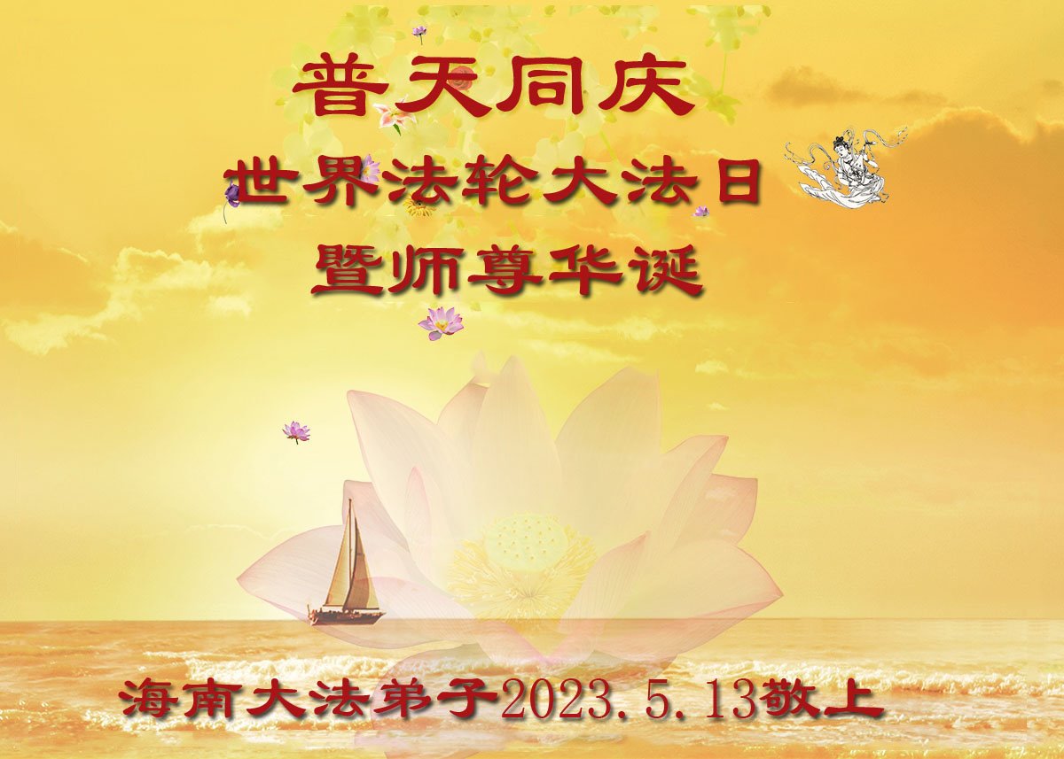 敬贺世界法轮大法日! 恭祝师尊生日快乐! 在任何环境都要助师救度世人。 在海南外地大法弟子敬上 2023年5月3日 在海南的长春大法弟子感恩师尊!