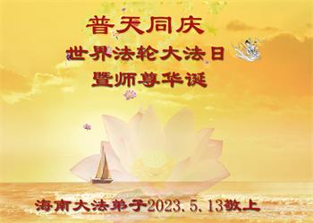 2023年5月3日 海南大法弟子恭祝慈悲伟大的师父生日快乐!庆祝世界法轮大法日!