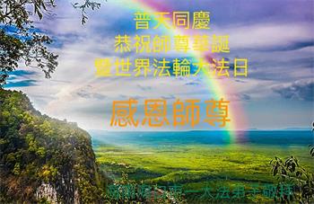 师父生日快乐!弟子唯有精進实修,正念除恶,多救世人,才不负师恩。 中国大陆贵州大法弟子恭祝师尊中生日快乐!庆贺世界法轮大法日!