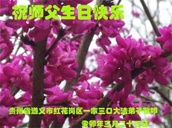 师父生日快乐!叩谢师尊的慈悲救度! 贵州省遵义市红花岗区一家三口大法弟子恭祝师父生日快乐!