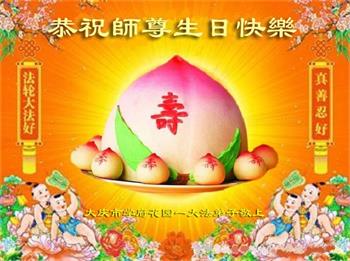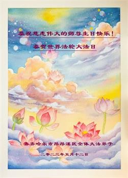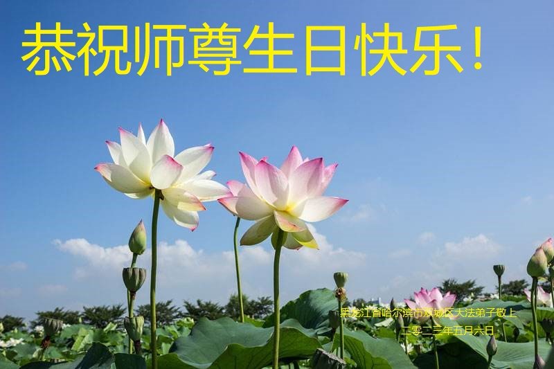 【明慧网二零二三年五月十五日】 黑龙江省哈尔滨市五常市一大法弟子恭祝师尊生日快乐!