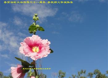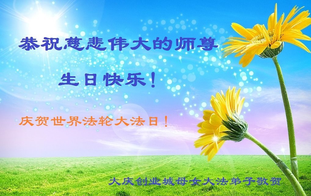 黑龙江省大庆市创业城地区母女大法弟子恭祝师尊生日快乐!恭贺世界法轮大法日! 黑龙江省大庆市学府花园一大法弟子普天同庆世界法轮大法日!
