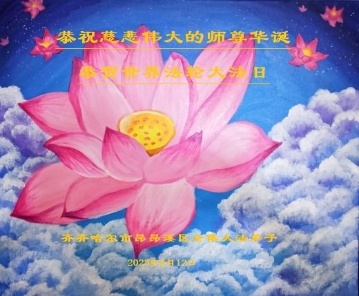 恭祝慈悲伟大的师尊生日快乐!恭贺世界法轮大法日 齐齐哈尔市昂昂溪区全体大法弟子敬上 2023年5月12日 黑龙江齐齐哈尔市昂昂溪区大法弟子恭贺世界法轮大法日!