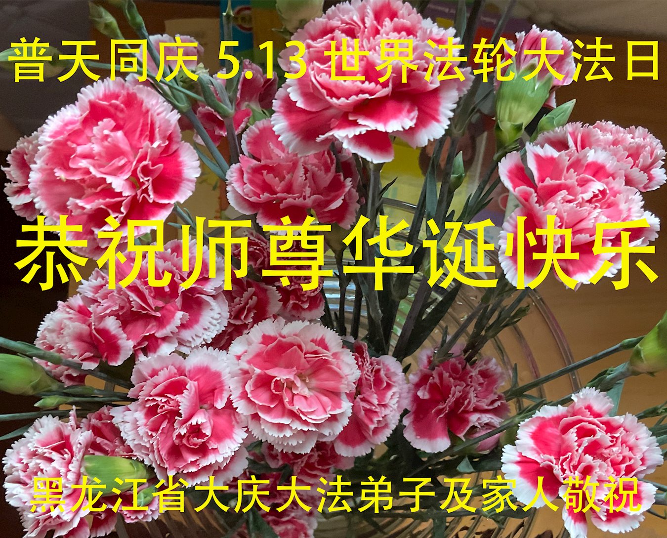 法轮大法好!真善忍好! 黑龙江省大庆市大法弟子恭祝师尊生日快乐!恭贺世界法轮大法日!