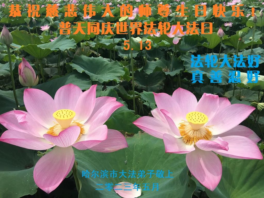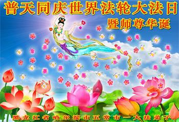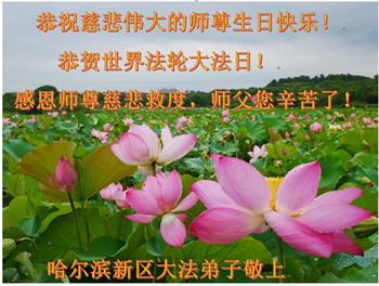 恭贺世界法轮大法日! 黑龙江哈尔滨市大法弟子恭祝慈悲伟大的师尊生日快乐!