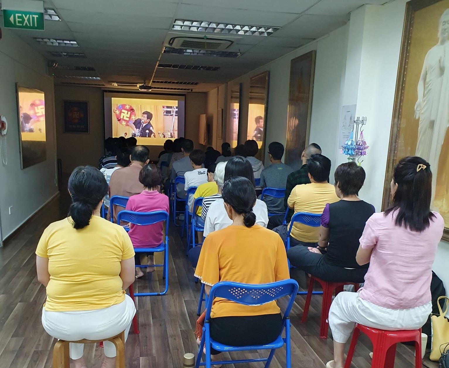 【明慧网二零二三年六月三十日】二零二三年六月十日至六月十八日,新加坡法轮佛学会举办了每个季度一次的为期九天的法轮功学习班(简称:九天班),免费教参加者学炼法轮功。这次参加九天班的新学员中有许多来自不同年龄层的新加坡本地民众,也有在中国大陆严酷的环境下无法炼法轮功而来到新加坡后渴望了解、学习法轮功的中国人。在九天班的最后一天,新学员们围坐在一起,纷纷分享他们参加九天班后的身心变化,以及他们对修炼的体悟。 图:新学员们观看法轮大法创始人李洪志先生的讲法录像。 |