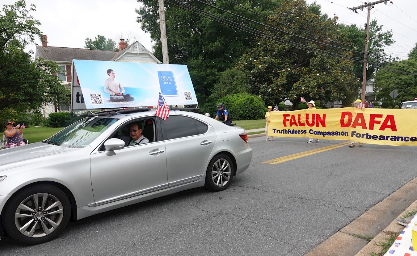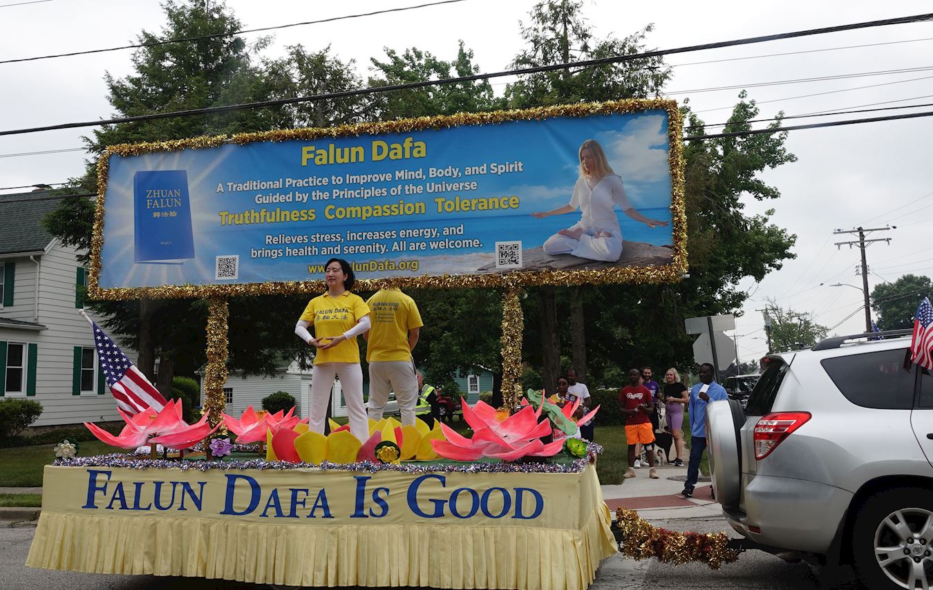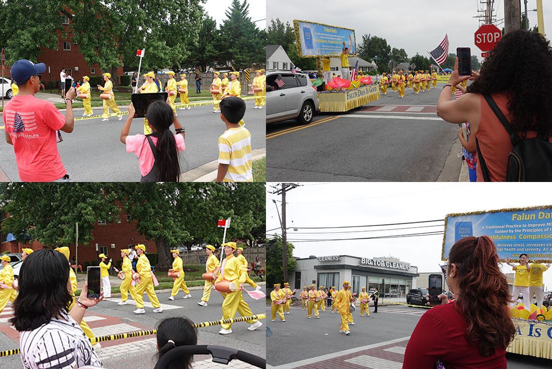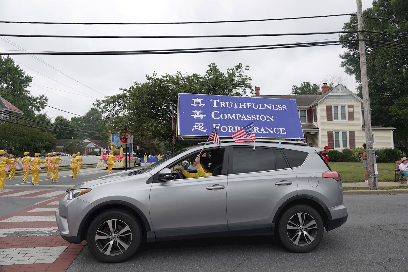 | 【明慧网二零二三年七月二日】(明慧记者李静菲美国马里兰州报道)二零二三年七月一日,马里兰州劳雷尔(Laurel)市率先举行独立日庆祝活动,美国大华府地区的部分法轮功学员参加了游行。大多数观看游行的当地民众都是第一次听闻法轮大法,他们表示真、善、忍是伟大的哲理,这正是他们渴求的,“多多益善”。 两位法轮功学员在装饰精美的花车上演示法轮功功法,紧随其后的是腰鼓队表演,两辆汽车上的展板以及法轮功学员手中的横幅向民众传递大法真相和真、善、忍信息。  图1~5:二零二三年七月一日,美国大华府地区的部分法轮功学员参加马里兰州劳雷尔(Laurel)市举行的独立日游行。 |