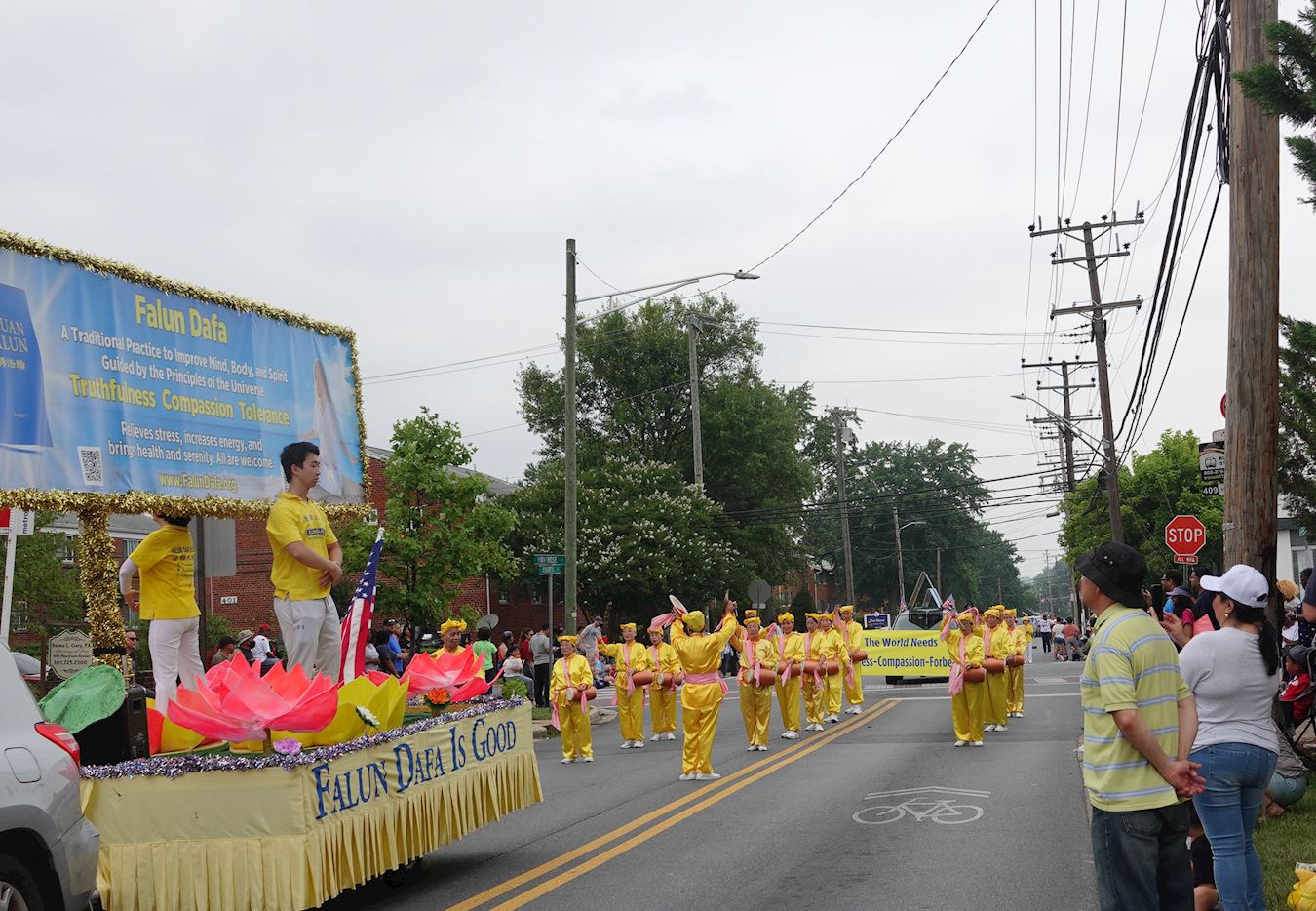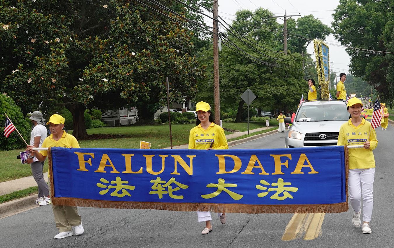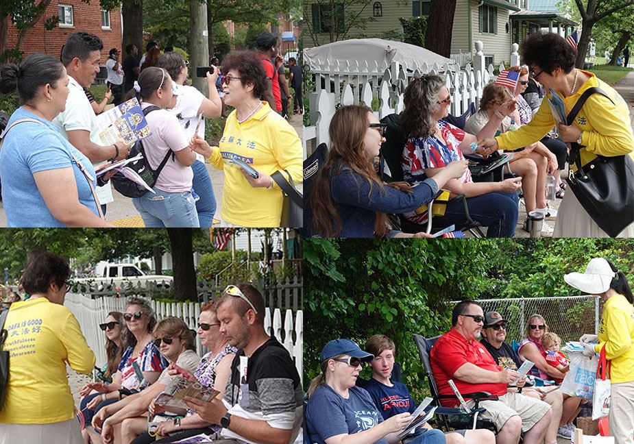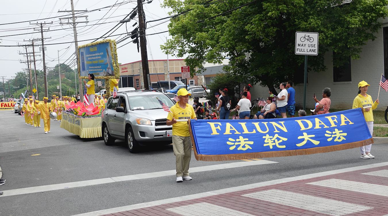 | 【明慧网二零二三年七月二日】(明慧记者李静菲美国马里兰州报道)二零二三年七月一日,马里兰州劳雷尔(Laurel)市率先举行独立日庆祝活动,美国大华府地区的部分法轮功学员参加了游行。大多数观看游行的当地民众都是第一次听闻法轮大法,他们表示真、善、忍是伟大的哲理,这正是他们渴求的,“多多益善”。 两位法轮功学员在装饰精美的花车上演示法轮功功法,紧随其后的是腰鼓队表演,两辆汽车上的展板以及法轮功学员手中的横幅向民众传递大法真相和真、善、忍信息。  图1~5:二零二三年七月一日,美国大华府地区的部分法轮功学员参加马里兰州劳雷尔(Laurel)市举行的独立日游行。 |