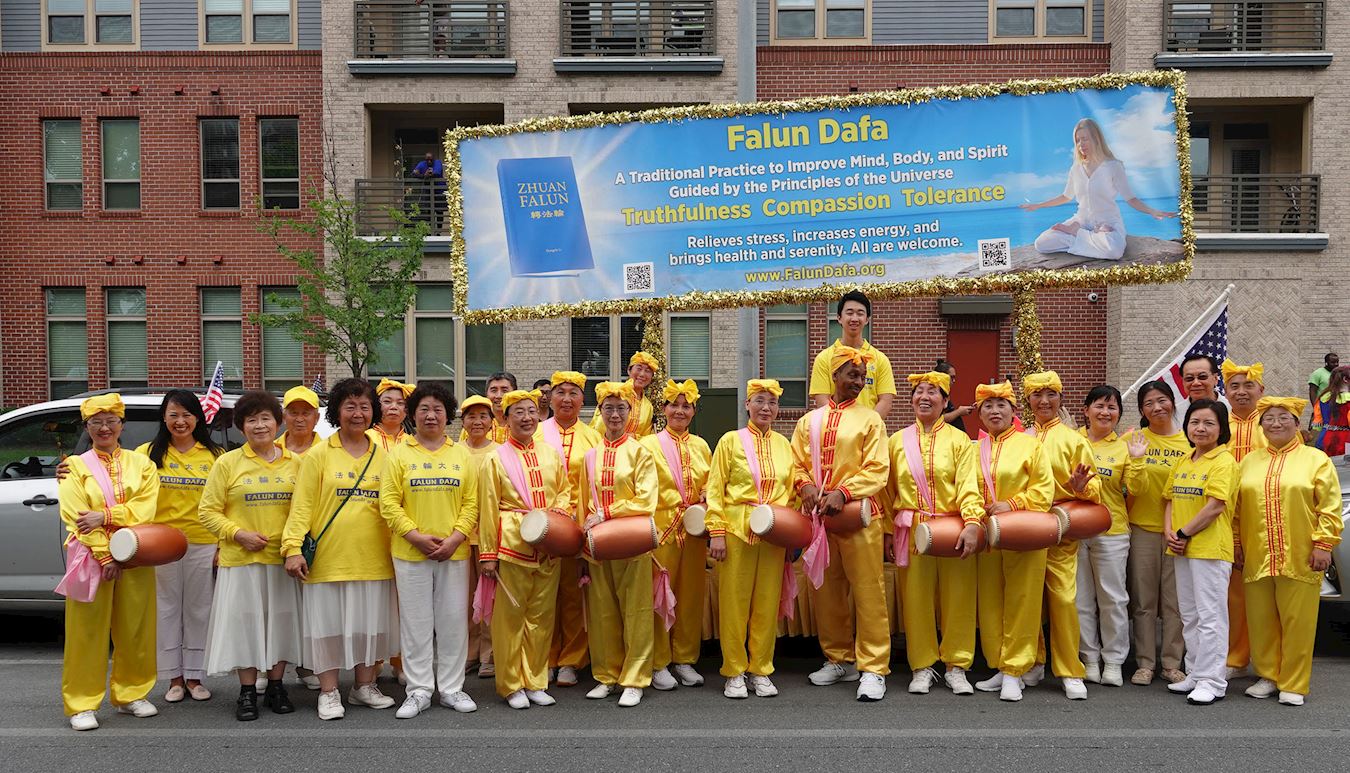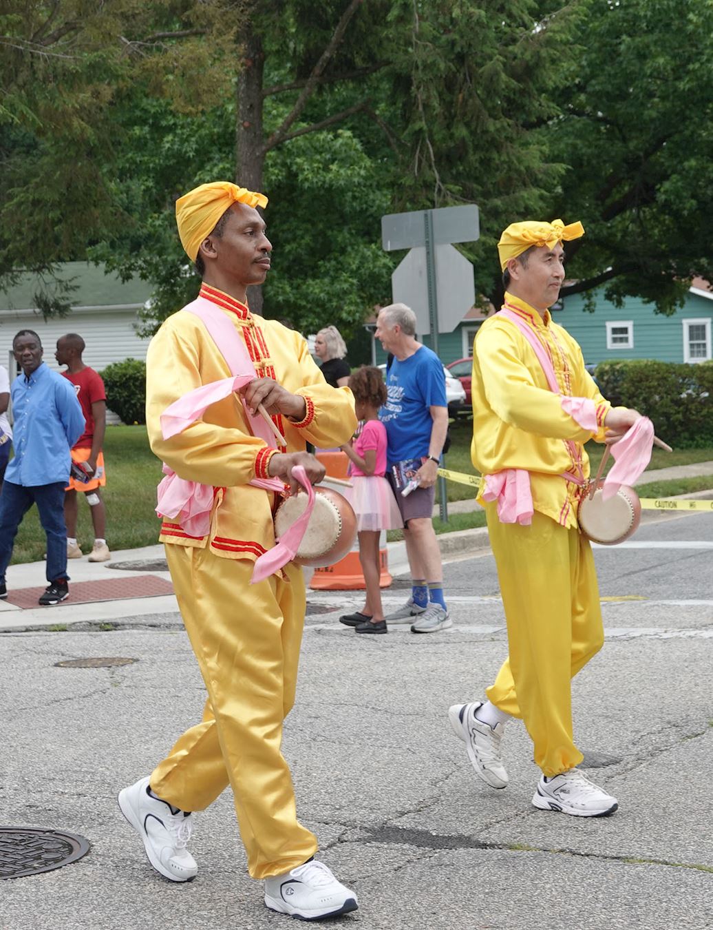 法轮功学员:民众反应令人感动 要把大法美好传遍马里兰州 商业顾问杜恩·哈珀(Duane Harper)与其他法轮功学员一起参加了游行。  图15:商业顾问杜恩·哈珀(Duane Harper,左)与其他法轮功学员一起参加了游行,表演腰鼓。 |