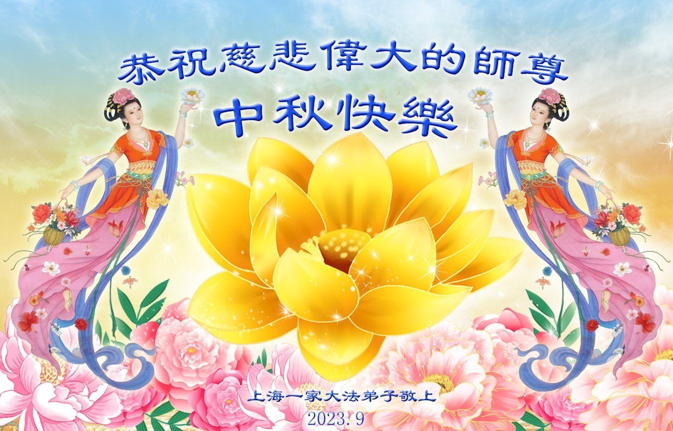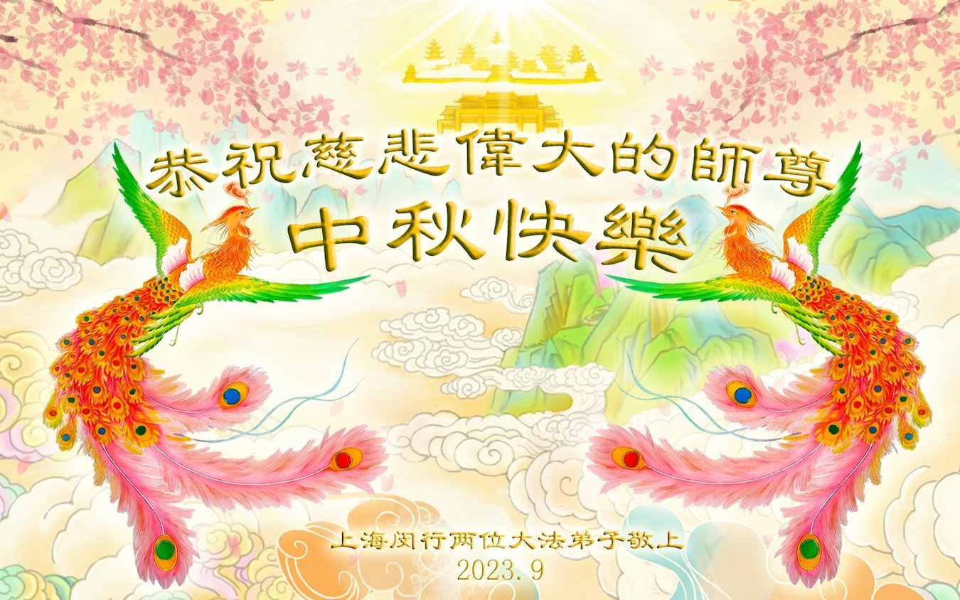 【明慧网二零二三年九月二十七日】 上海一家大法弟子恭祝慈悲伟大的师尊中秋快乐!