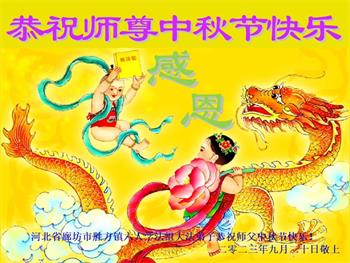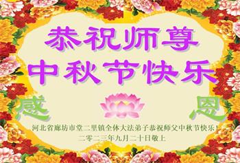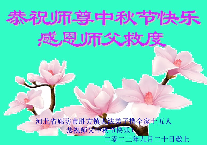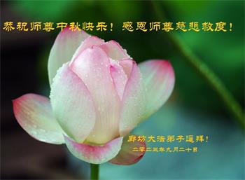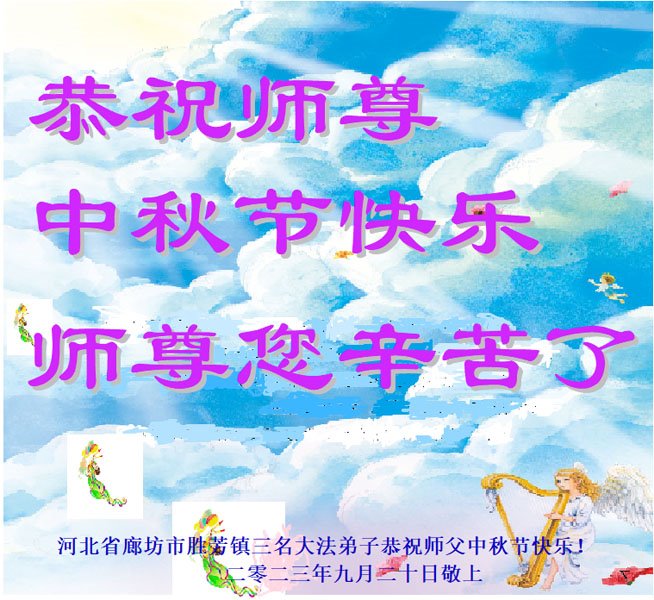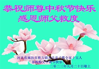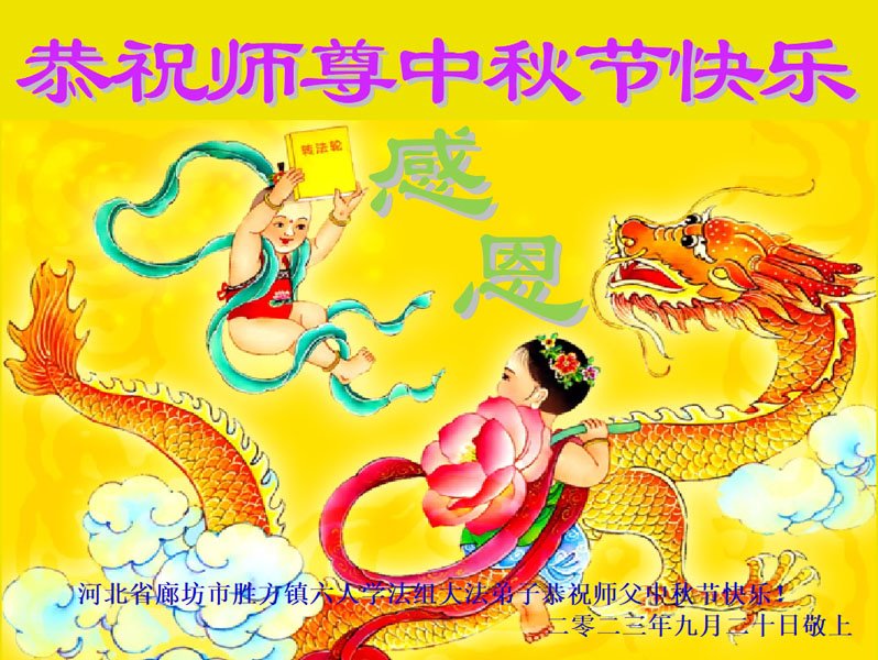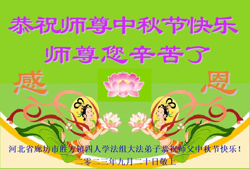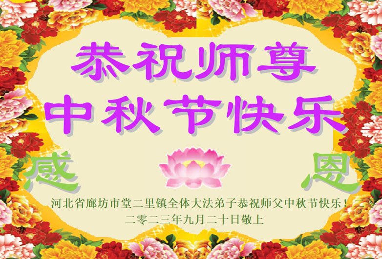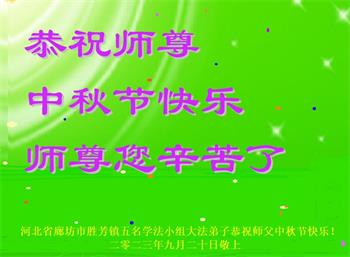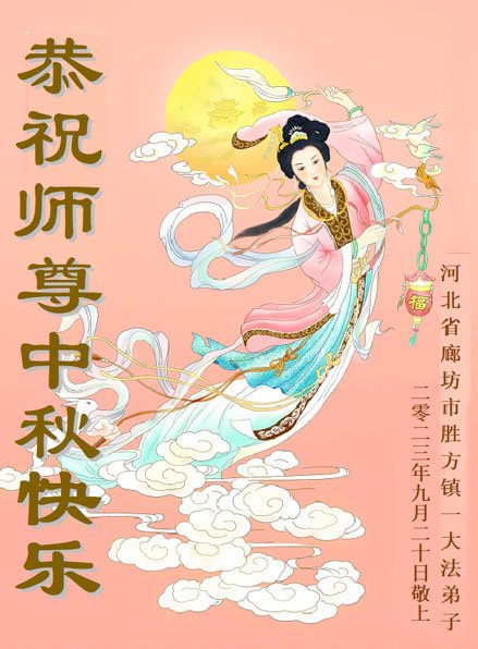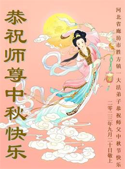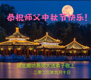 【明慧网二零二三年九月二十七日】 河北省廊坊市胜方镇四人学法组大法弟子恭祝师父中秋节快乐!