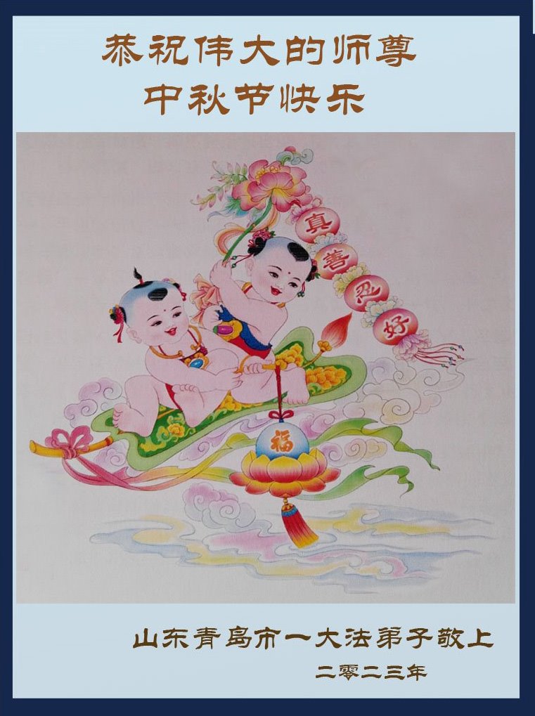 【明慧网二零二三年九月二十七日】 山东青岛市莱西市一位大法弟子恭祝师尊中秋节快乐!