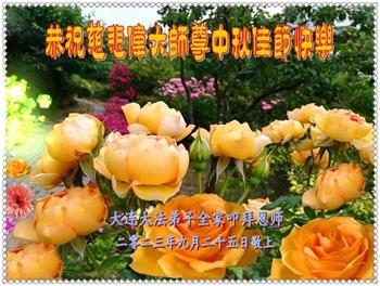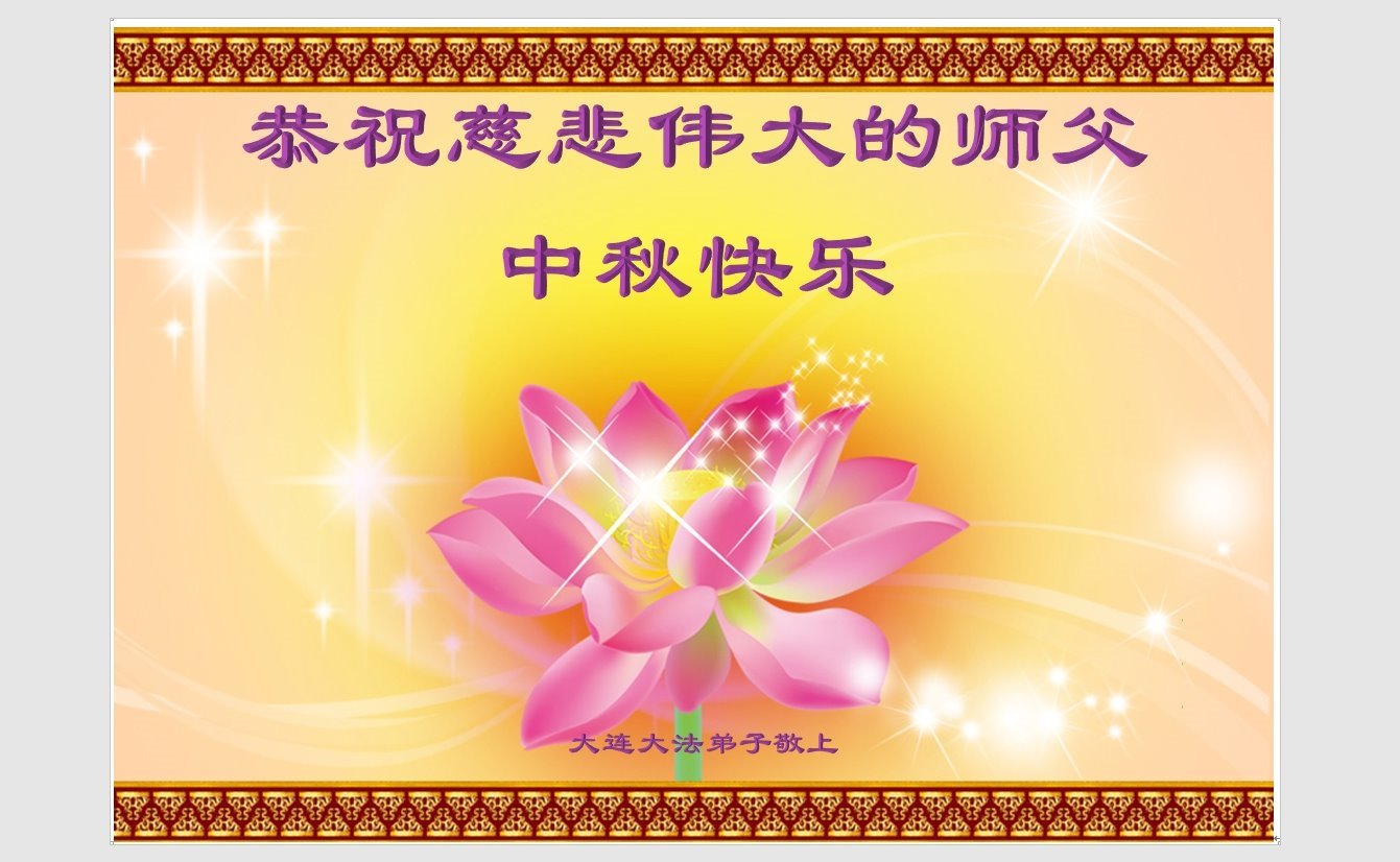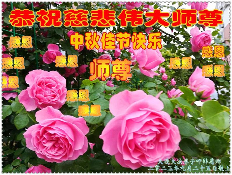 【明慧网二零二三年九月二十八日】 辽宁省大连市一学法小组大法弟子恭祝慈悲伟大的师尊中秋节快乐!