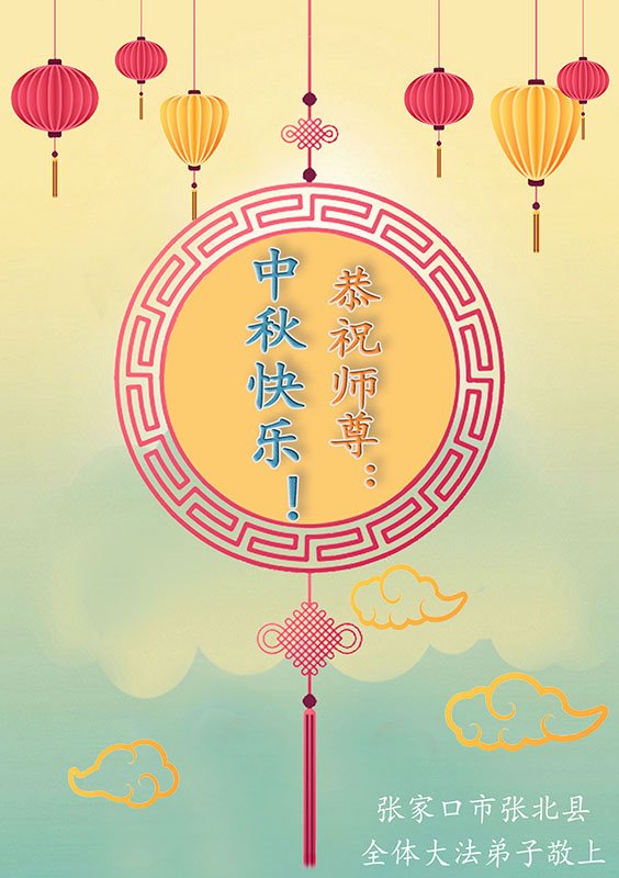 河北省张家口市一家三口代表本市不能上网的大法弟子恭祝慈悲伟大的师父中秋节好! 张家口市大法弟子敬祝 2023年9月19日 |
