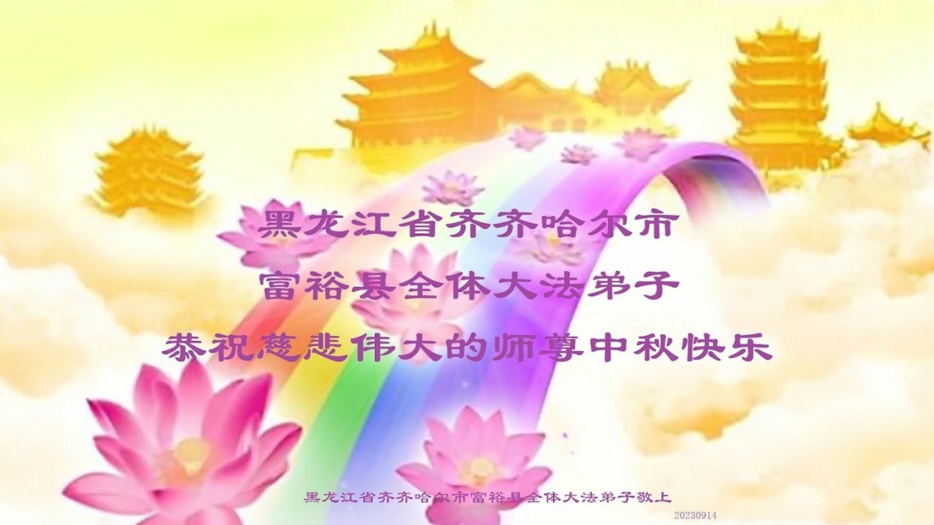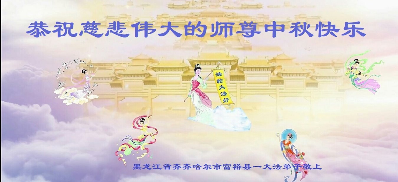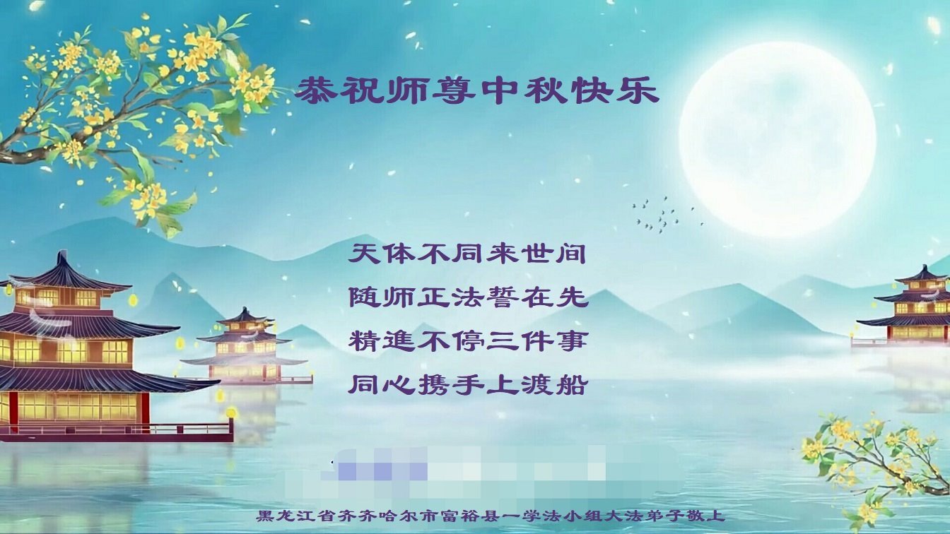 【明慧网二零二三年九月二十八日】 黑龙江省齐齐哈尔市富裕县一大法弟子恭祝慈悲伟大的师尊中秋快乐!