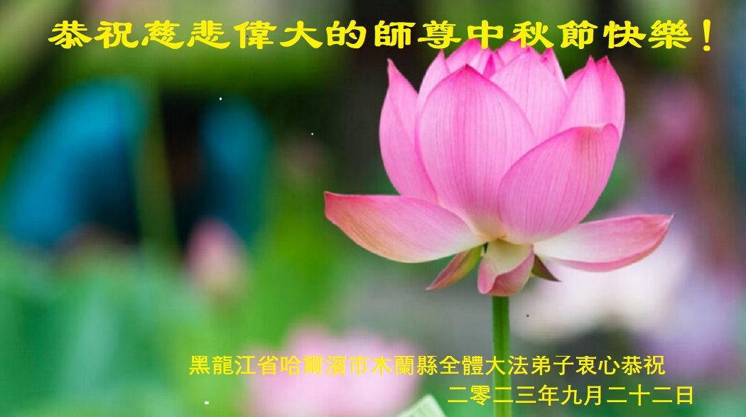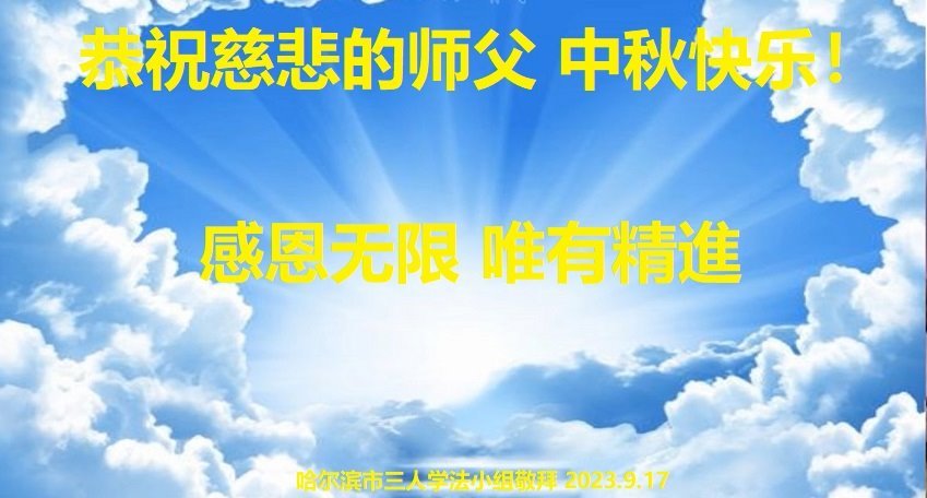 【明慧网二零二三年九月二十八日】 黑龙江省哈尔滨市一大法弟子恭祝慈悲伟大的师尊中秋节快乐!