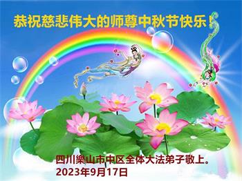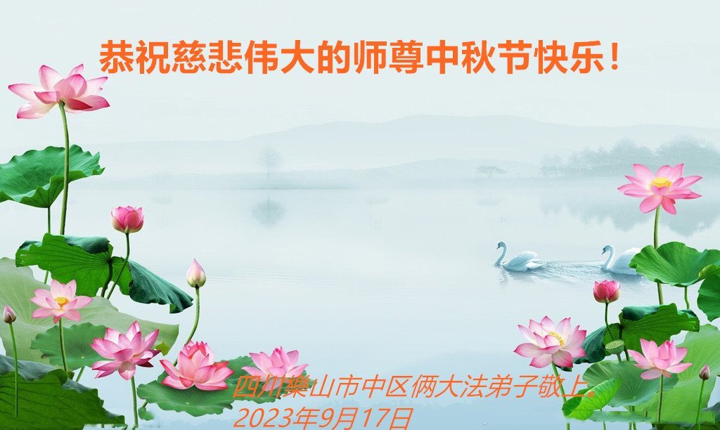 四川乐山市中区全体大法弟子恭祝慈悲伟大的师尊中秋节快乐!