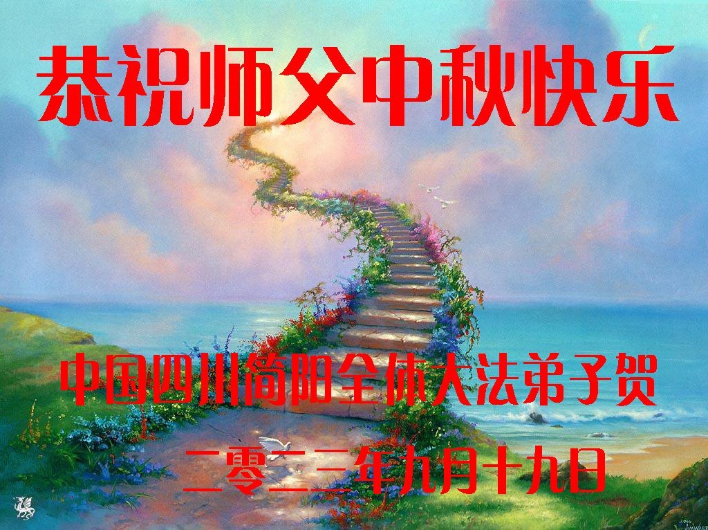 弟子们很想念师父,盼望师父早日回归中原和弟子们团聚! 弟子们首先要修好自己,努力做好该做好的三件事,多救人,一定达到师父要求的,做师父的真修弟子。才能回报师父的救度之恩,感谢不尽师父为弟子、为众生的慈悲苦度。谢谢师父! 四川简阳全体大法弟子敬上 2023年9月19日 四川省大法弟子恭祝慈悲伟大的师尊中秋好!