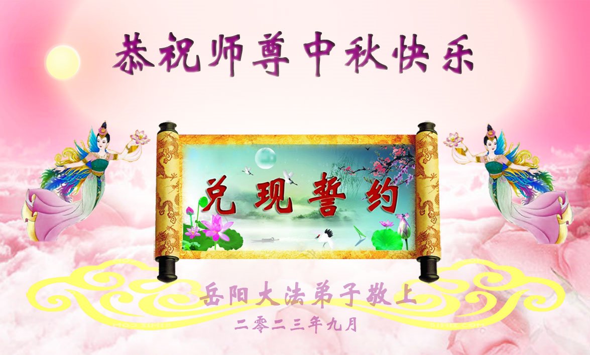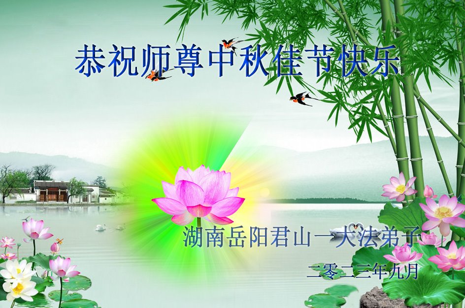 师尊好!借中秋节来临之际,湖南益阳大法弟子恭祝师尊中秋快乐! 我们一定要修好自己,多救人,让师尊欣慰! 二零二三年九月二十四日 湖南省岳阳市全体大法弟子恭祝师尊中秋节快乐!
