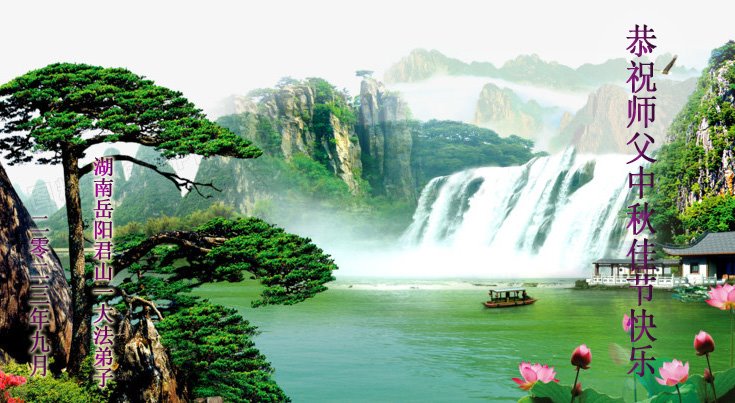 恭祝师父中秋佳节快乐!谢谢师父的慈悲苦度! 法轮大法好!真善忍好!法轮大法是正法! 湖南岳阳君山一大法弟子恭祝师尊中秋佳节快乐!