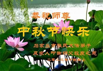 石家庄长安区一学法小组大法弟子恭祝师尊中秋节快乐! 河北省石家庄市大法弟子恭祝师尊中秋节快乐!