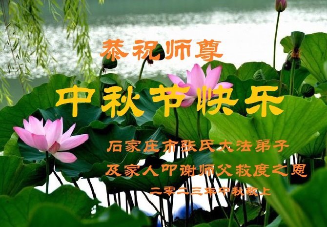 石家庄一家大法弟子恭祝师尊中秋节快乐! 河北省石家庄市长安区一学法小组大法弟子恭祝师尊中秋节快乐!