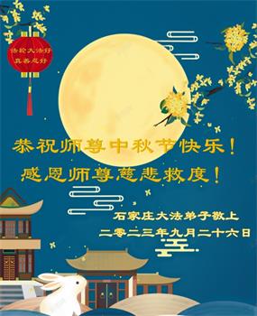 【明慧网二零二三年九月二十八日】 河北省石家庄桥西大法弟子四人学法小组恭祝师尊中秋快乐!