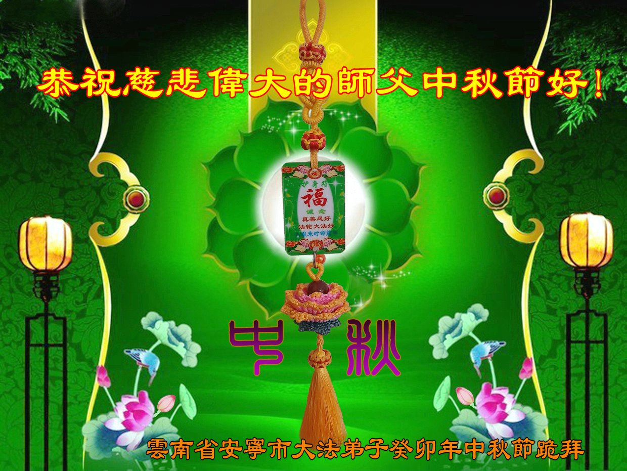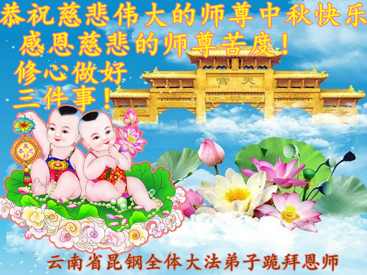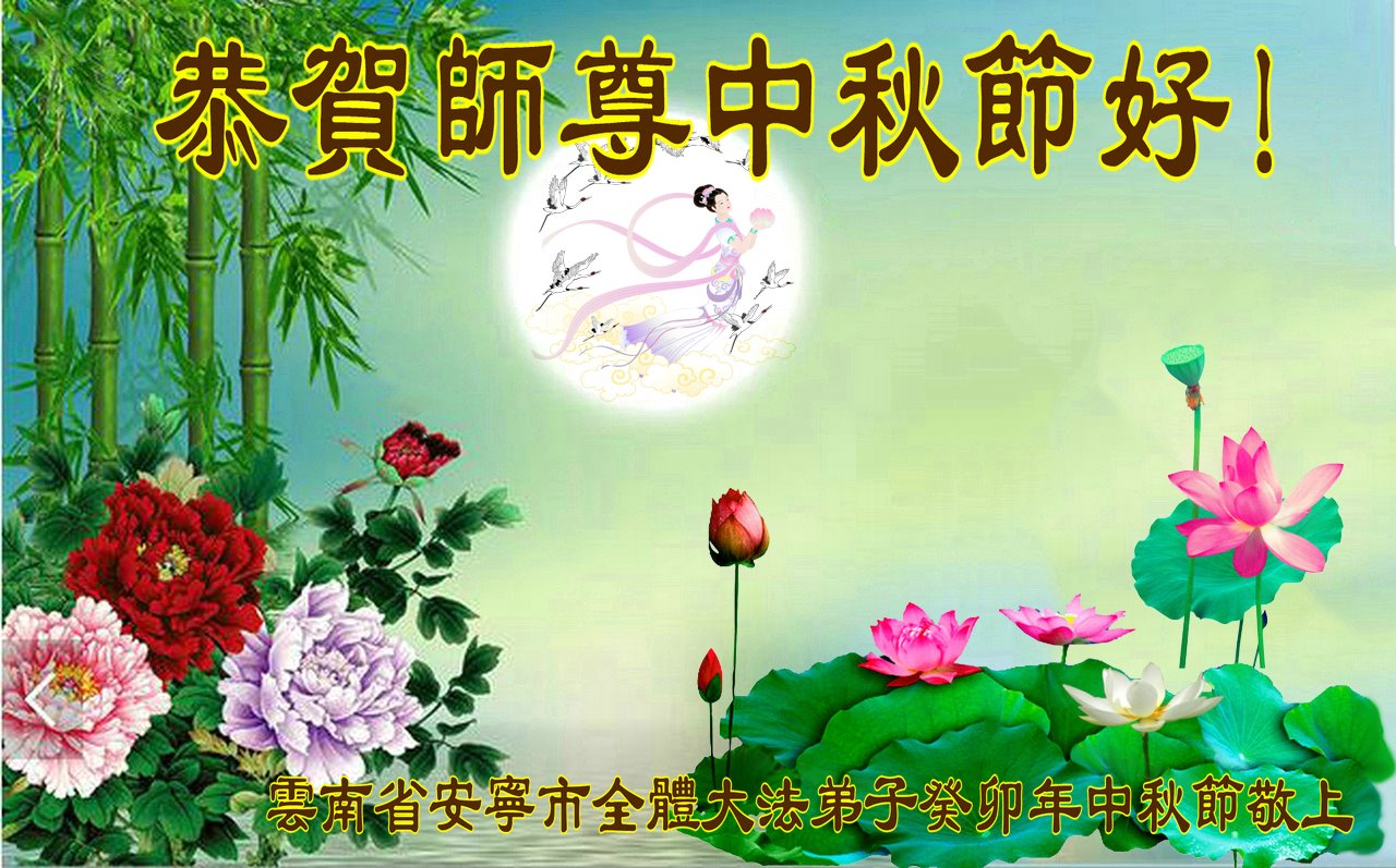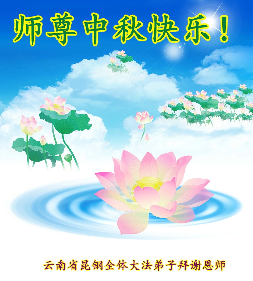 云南楚雄市全体大法弟子敬上 云南省昆明市安宁市、昆钢全体大法弟子感恩师尊慈悲救度!敬祝师尊中秋节好!