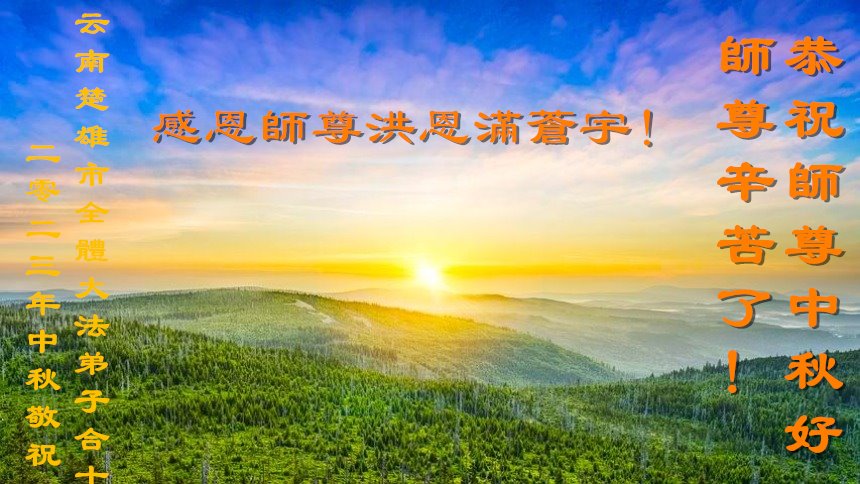 云南楚雄州全体大法弟子敬祝 云南省楚雄州楚雄市全体大法弟子恭祝伟大的师尊中秋快乐!