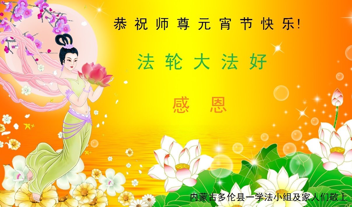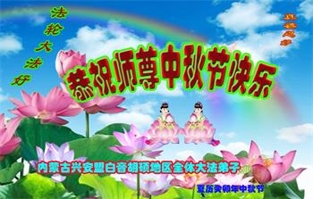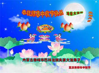 内蒙古赤峰市巴林左旗夫妻大法弟子叩拜恩师!恭祝师尊中秋节快乐! 内蒙古自治区通辽市霍林郭勒市一学法小组三名大法弟子恭祝师尊中秋节快乐!