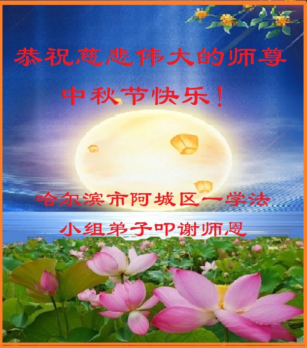 【明慧网二零二三年九月二十九日】 黑龙江省哈尔滨市阿城区一学法小组大法弟子恭祝慈悲伟大的师尊中秋节快乐!