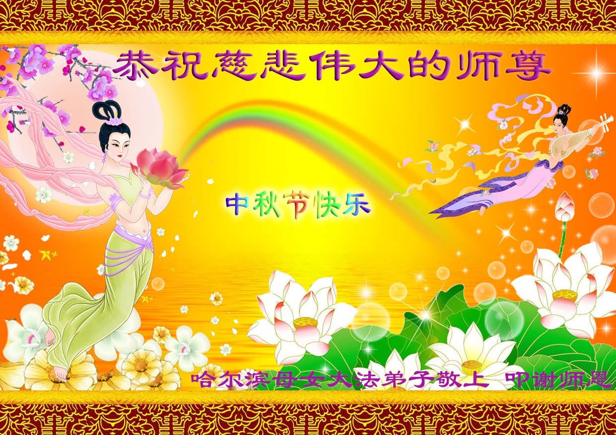 弟子感恩师尊救度之恩,师父您辛苦啦,谢谢师父。 黑龙江哈尔滨大法弟子恭祝师父中秋节快乐!