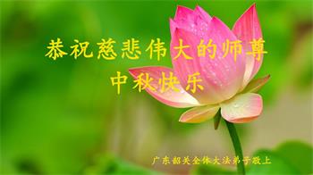 弟子学了师尊最近的新经文,非常震撼,痛悔自己以前走错了路,悔恨自己浪费了大量宝贵的时间。现在真正明白能得大法的可贵与肩负的重任,下定决心彻底去掉根本执着,去掉各种执着心、各种欲望,敬师敬法,用大量的时间来背法学法,真正能提高上来,真正能做好三件事,走好最后的修炼道路。 叩谢师恩! 广东汕头一个曾经走过弯路的大法弟子敬上 广东梅州市兴宁一大法弟子家属恭祝慈悲伟大的师尊中秋快乐!