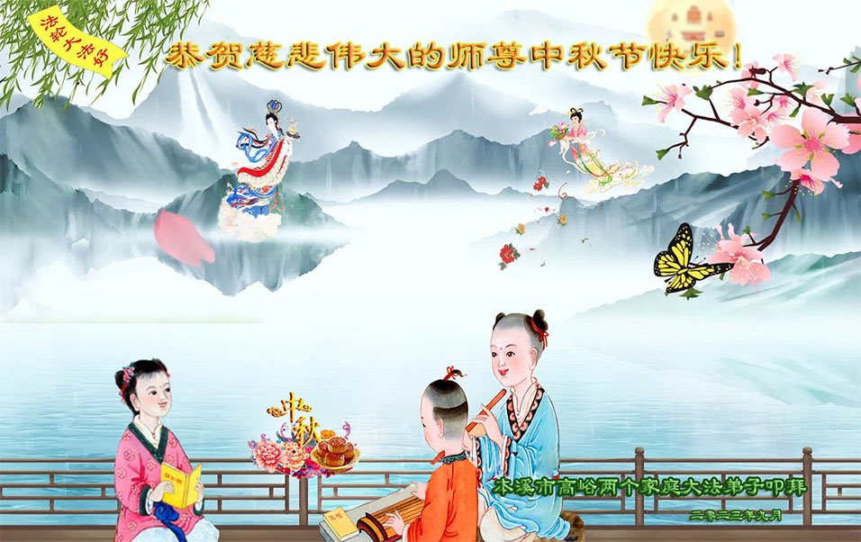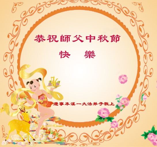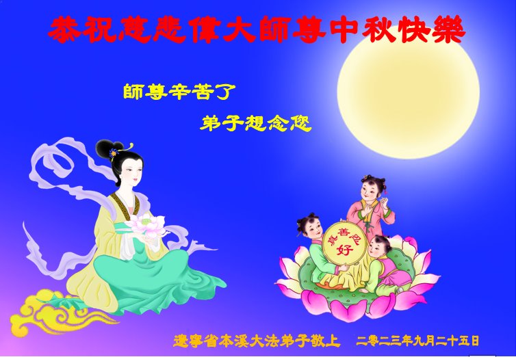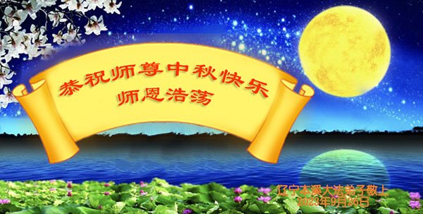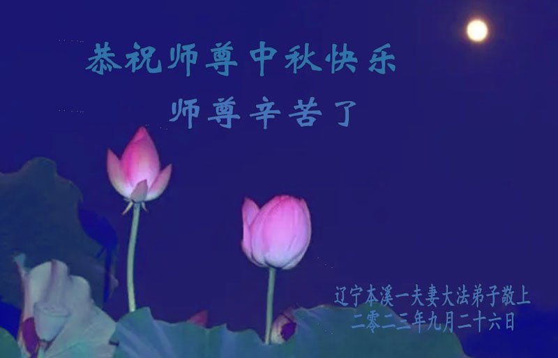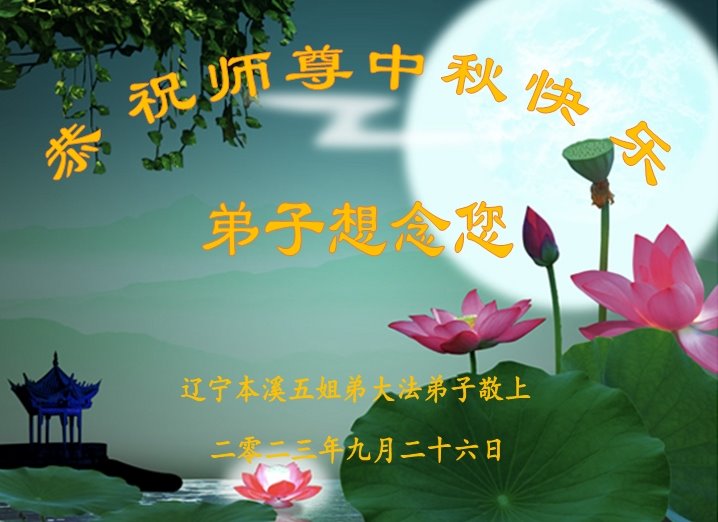 中秋佳节到了,弟子非常想念慈悲伟大的师尊。您为众生操尽了心,弟子更知道您为我这个弟子也是付出的太多太多,用尽人间的语言也无法表达您的圣恩,借此中秋佳节之际,恭祝师尊中秋节快乐!弟子会努力做好师尊要求的三件事,让师尊欣慰。 师尊您辛苦了!叩拜恩师! 辽宁省本溪市一学法小组大法弟子恭祝师尊中秋节快乐!