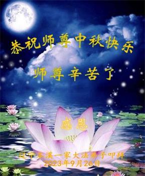 【明慧网二零二三年九月二十九日】 辽宁本溪大法弟子一家四口恭祝慈悲伟大的师尊中秋快乐!