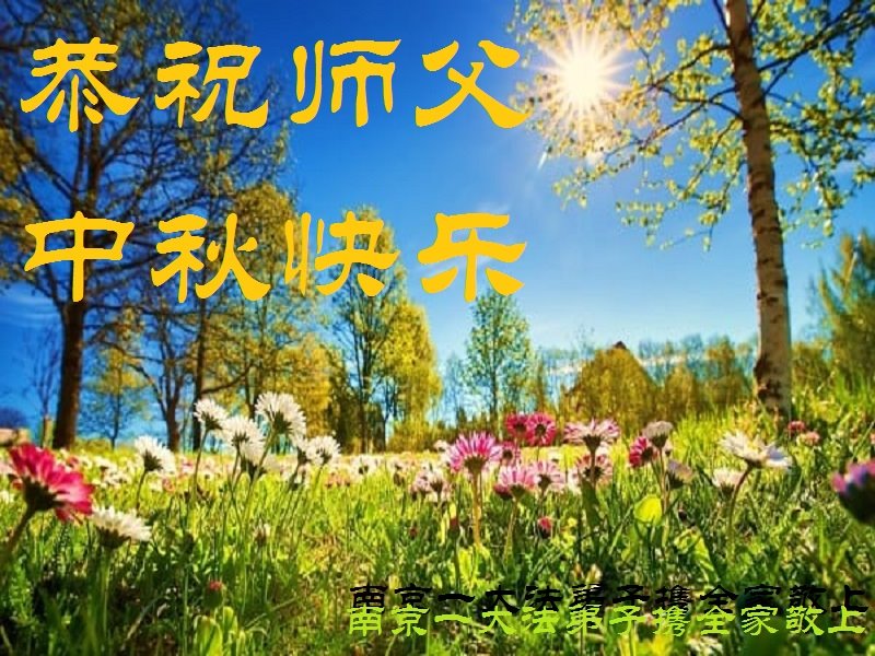 感恩师尊慈悲救度!弟子要做好三件事,勇猛精進,坚修到底。 南京秦淮区二大法弟子叩拜 江苏大法弟子恭祝师父中秋节快乐!
