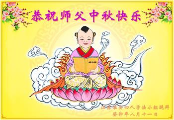 师父,您辛苦了! 弟子们唯有多学法,修好自己,做好三件事,不忘师恩,兑现誓约。 江苏淮安大法弟子恭祝师父中秋节快乐!