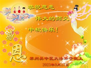 【明慧网二零二三年九月二十九日】 江苏淮安大法弟子恭祝师父中秋快乐!