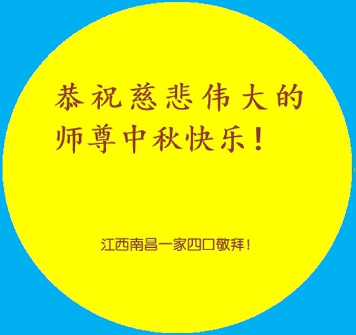江西省南昌市青云谱区一大法弟子全家恭祝慈悲伟大的师尊中秋节快乐!