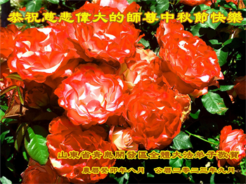 山东省青岛一学法小组大法弟子恭祝慈悲伟大的师尊中秋节快乐!