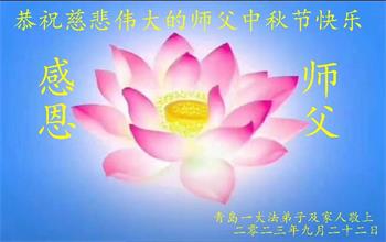 山东青岛一大法弟子及家人恭祝慈悲伟大的师父中秋节快乐!