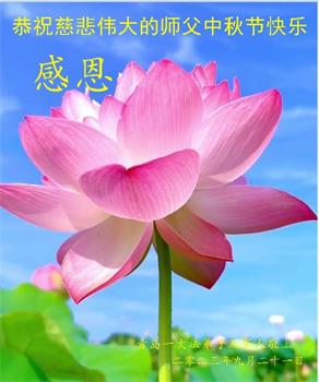 尊敬的恩师,感谢您这些年对弟子的保护和慈悲救度,弟子能感受到你时刻在身边守护,弟子让您操心了。 在乱世中弟子十分荣幸能得到这万古不遇的佛法,能在大法中修炼是我此生最大的幸福。在团圆节来临之际,弟子倍感思念师父,感恩师父,谢谢师父!弟子对师父的感恩无法用语言表达,真是一人修炼全家受益,弟子的全家这些年都受到师父的保护,谢谢师父!弟子唯有好好做好三件事来表达对师父的感恩之情。 青岛大法弟子跪谢师恩 山东青岛市一中年大法弟子恭祝师尊中秋节快乐!