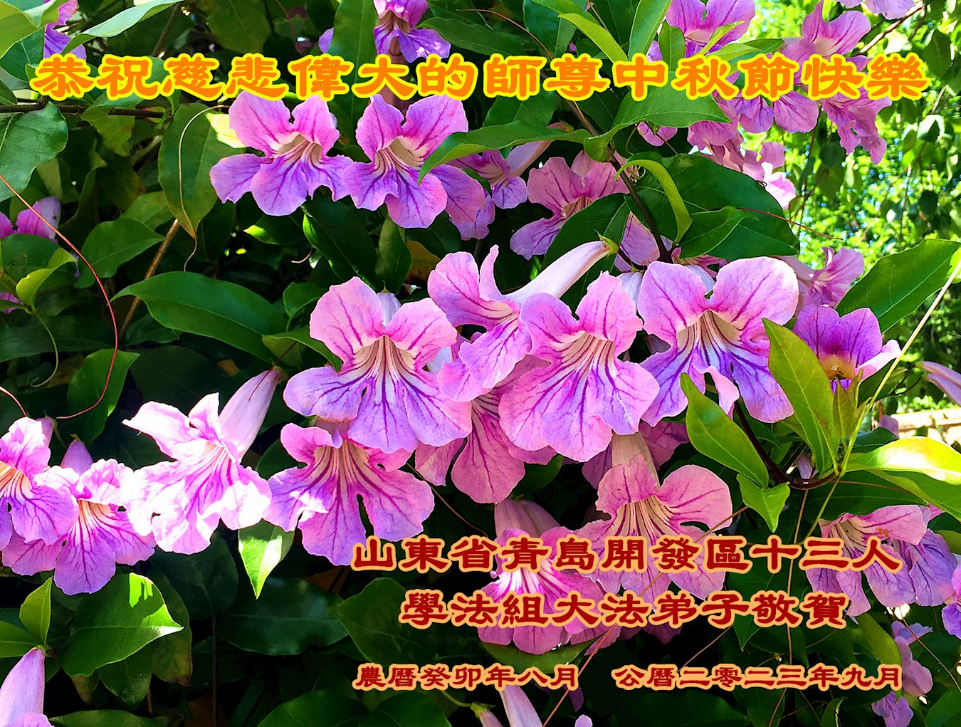 【明慧网二零二三年九月二十九日】 山东省青岛一大法弟子恭祝慈悲伟大的师尊中秋节快乐!