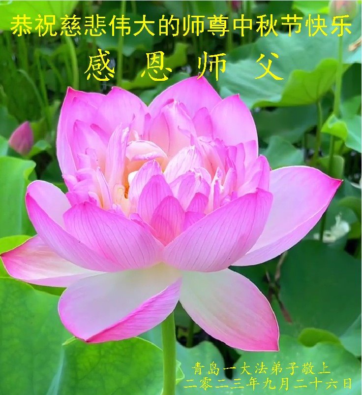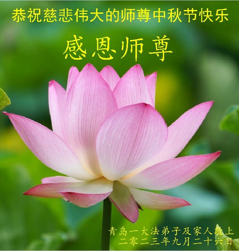 我是山东青岛市青年大法弟子,在中秋佳节即将来临之际,在此谨代表我们一家五口大法弟子恭祝伟大的师尊节日快乐! 感恩师尊将我们从肮脏的尘世捞起洗净,您替弟子们承受了巨大的业力,时时刻刻都在看护着弟子。末后的末后,我们会精進实修,做好三件事,跟着师尊一起回家! 再次叩谢师恩! 山东青岛大法弟子恭祝师父中秋节快乐!