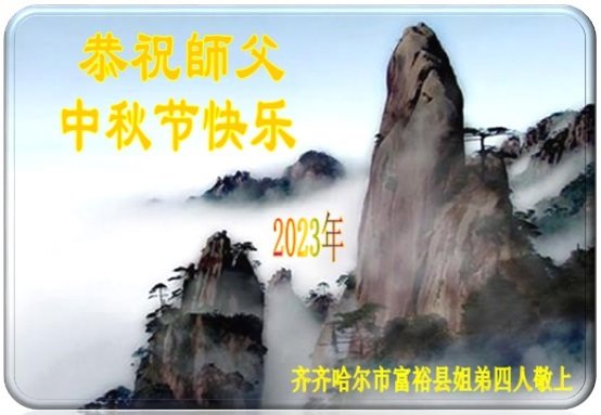 【明慧网二零二三年九月二十九日】 黑龙江省齐齐哈尔市富拉尔基区老年夫妇大法弟子恭祝慈悲伟大的师尊中秋快乐!