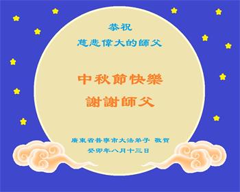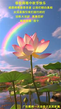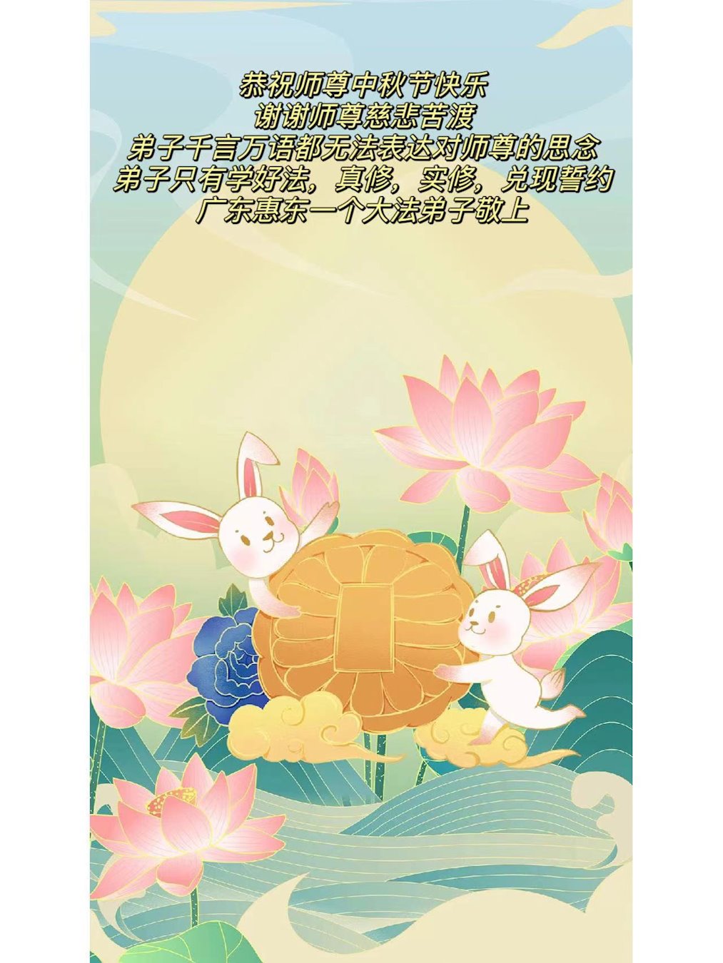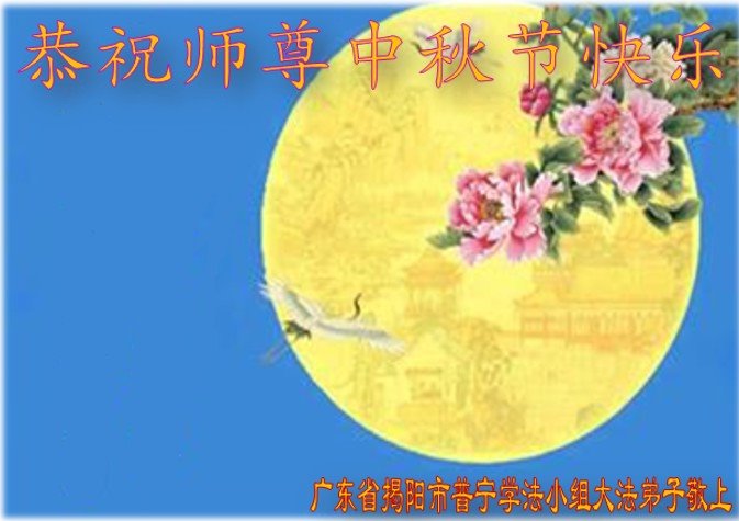 感恩师尊慈悲救度!谢谢师尊! 广东省惠州市全家大法弟子敬上 广东省惠东一大法弟子恭祝师尊中秋节快乐!