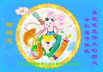 谢谢师尊一直保护着弟子。 广东省惠州市一大法弟子及全家敬上 广东珠海大法弟子恭祝师父中秋快乐!