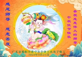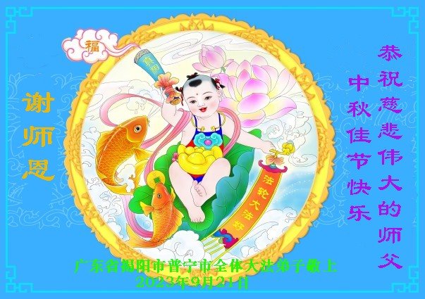 广东省揭阳市普宁市全体大法弟子敬上 2023年9月21日 广东省惠州市一大法弟子及全家恭祝慈悲伟大的师尊中秋节快乐!