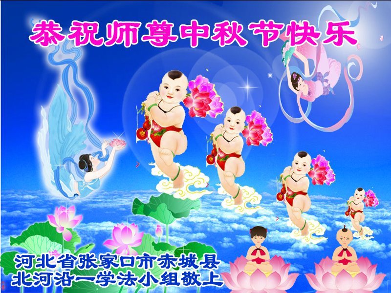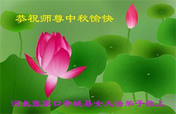 尊敬的师父好:我们学法小组的大法弟子向师父问候!您辛苦了! 您为我们操尽了心。弟子只有在三件事中,精進,救度更多的世人,让师父多一些欣慰。 学法小组大法弟子敬上 河北张家口赤城县一女大法弟子恭祝师尊中秋快乐!